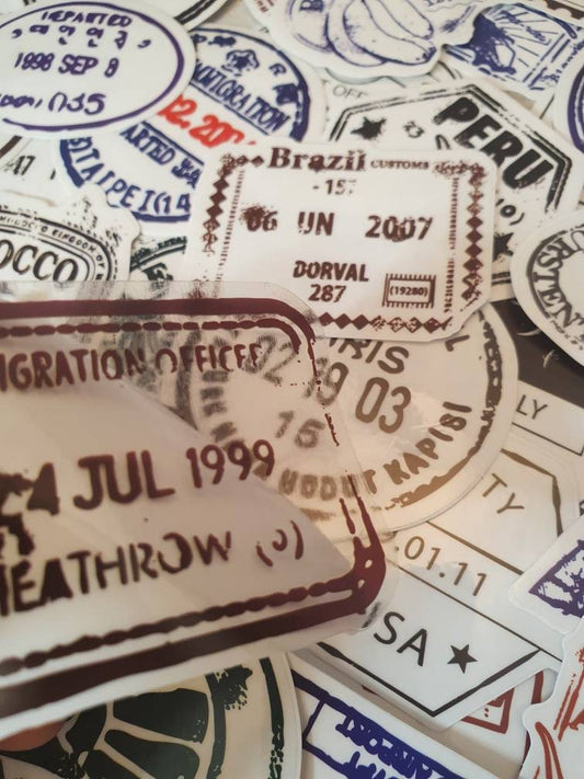 Passport inspired stamps, Travel stickers set - 20 pcs (random)