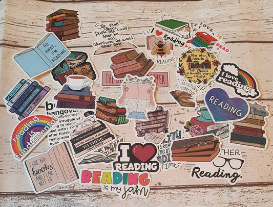 Book lovers stickers set - 20 pcs (random) - decorate notebooks, bottles, suitcase, Laptop, bookshelves